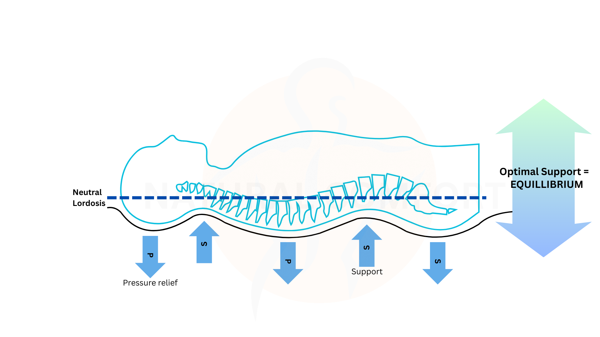 The secret to optimal comfort is by achieving a neutral spinal position (neutral lordosis); by attaining an equilibrium between support & pressure relief.