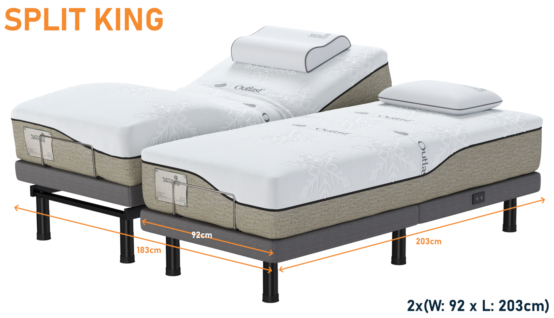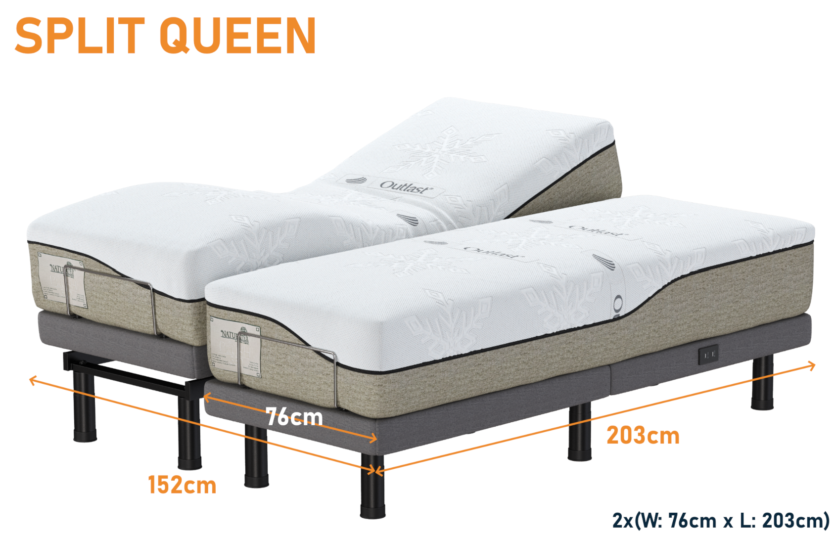 - Two motor head and foot tilt