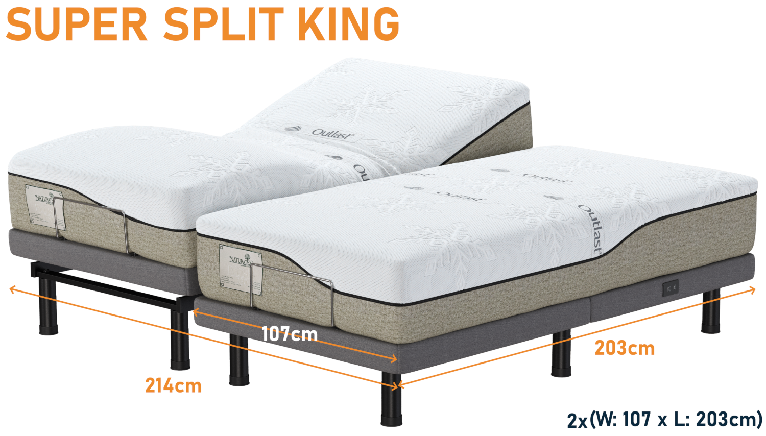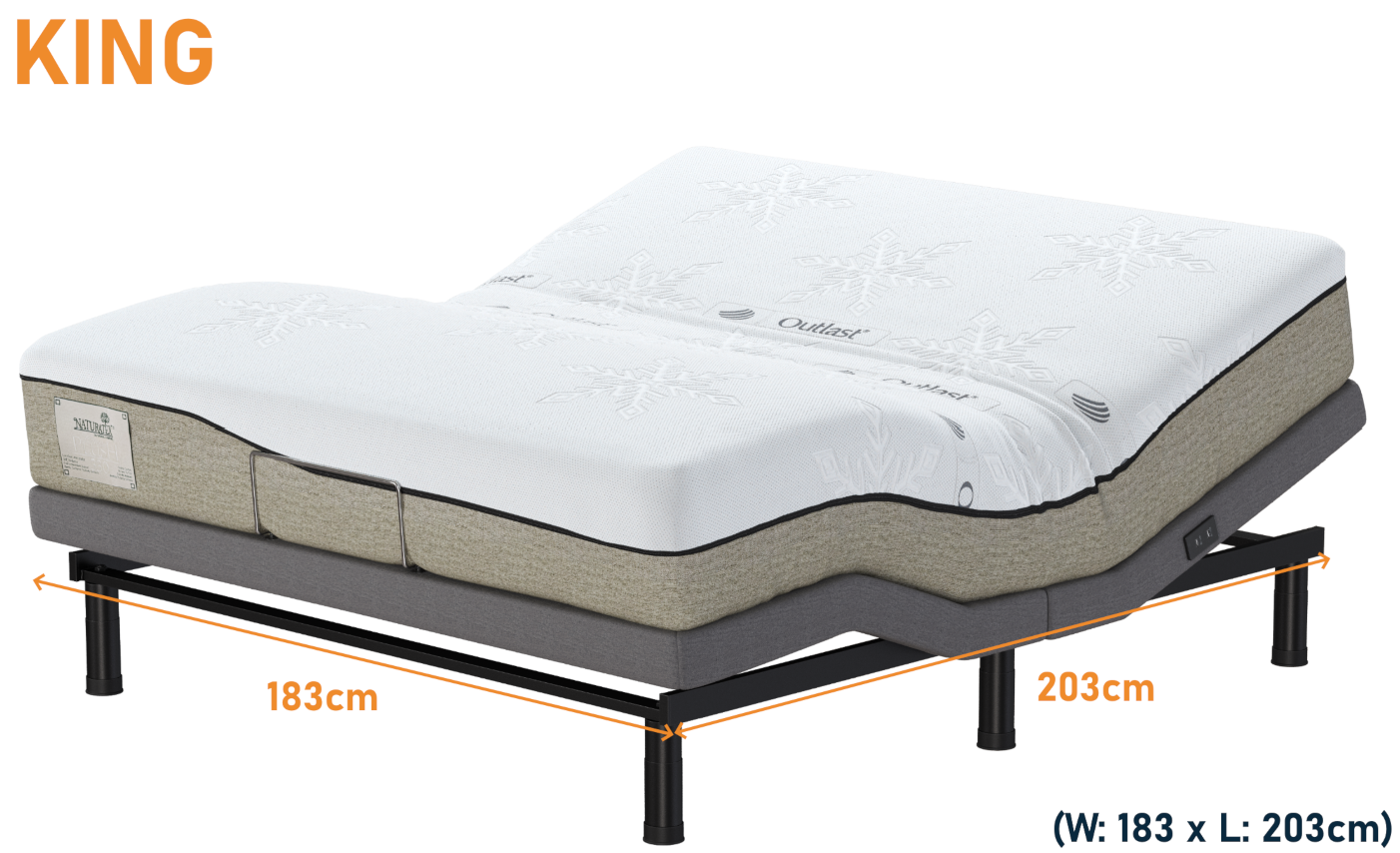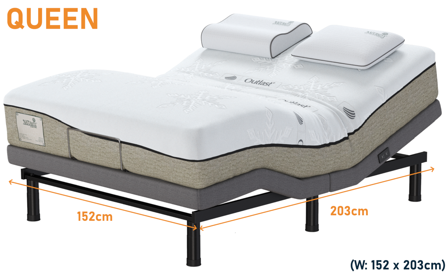 - CompatiBase functionality – compatible to fit within the confines of standard Australian size bedframes with removal of slats and cleatbars if required.